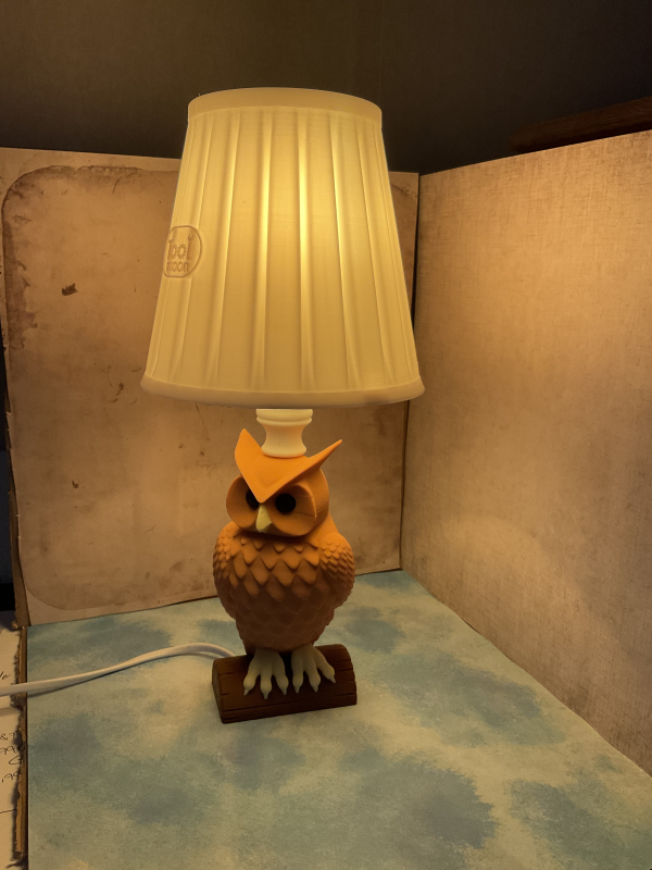 Die Farbe des Lampenschirmes und der Eule sind variierbar, dazu einfach eine Mail an: bestellung@spas3ddruck.de