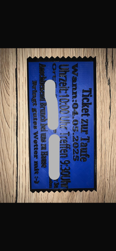 Eine Einladungskarte aus dem 3d Drucker aus hochwertigen PLA.